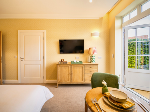 Every detail considered, each room has fitted wardrobes and a spa-like, fully equipped wet room. Smart TVs and a landline make it easy to stay connected to friends and family while enjoying the programmes you've always loved. Many rooms include a profiling bed to support rest and movement with gentle precision.