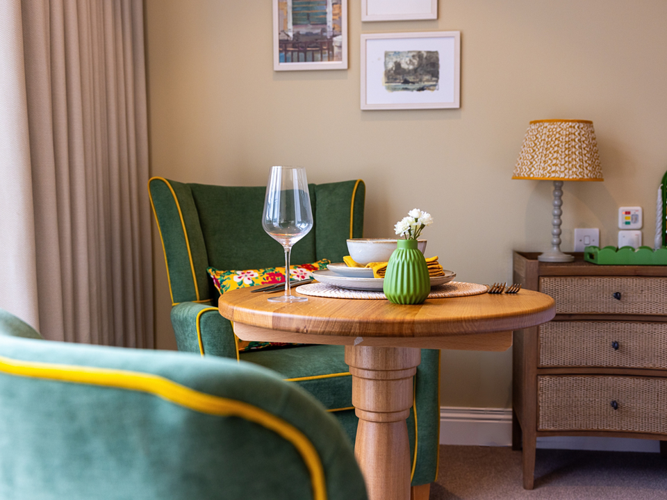 Each beautiful bedroom at our stunning, state-of-the-art care home has been elegantly and sensitively designed to feel just like home. Soft natural light spills through sash windows, resting across graceful furnishings and the personal treasures that hold a lifetime of memories. Whether you've been spending time in the gardens, enjoying an activity or an outing with friends, or sharing time with family, your room is your gentle retreat, a place of comfort and of true belonging.